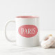 A nice pink mug that says Paris on it. Modern simple design with a Parisian look.