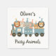 Celebrate any occasion with these adorable personalised napkins featuring a delightful safari train! A cast of whimsical safari animals, each sporting a festive party hat, chugs along on a charming train. These napkins are perfect for adding a touch of fun and personalisation to your next birthday party, baby shower, or any gathering.