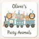 Cute Party Animals on Train Personalised Square Paper Coaster