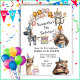 Your party guests will love this charming animal-themed birthday invitation! Featuring a delightful lineup of a llama, bear, gorilla, zebra, and a cat, all dressed in festive party hats and bearing gifts, this invite sets the perfect tone for an unforgettable celebration.