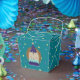 Cute party hedgehog with a confetti background favour box.
