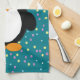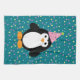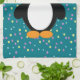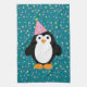 Cute penguin wearing a party hat with a confetti pattern background kitchen towel.