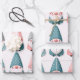 Cute Pastel Christmas Gnomes, Pink Blue Grey Wrapping Paper Sheet