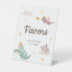 Cute pastel birthday party favour table sign featuring playful dragon, star and cloud illustrations paired with fun, stylish typography on different colour backgrounds. You can find more matching items from this collection in my store.