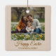 Embrace spring's charm with this adorable patchwork Family Name and photo ornament. Featuring cute bunnies, cheerful daisies and tulips, and delightful Easter eggs, all arranged in a vintage pattern. The soft pastel palette creates a cozy, nostalgic feel. Add your name and photo.