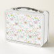 This is a standard metal lunchbox that appears to work just fine. We designed this box ourselves with an uploaded photo and custom text on the front and back. It looks absolutely beautiful except the front of the lunchbox is not centered like it shows in the photo. The print borders don't align with the inset flat part of the box where the preview photo online showed it perfectly centered in there. The back looks nice and centered though.