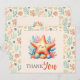 This pastel baby shower thank you card features a cute smiling starfish surrounded by seaweed, shells and coral on a vintage cream background. The playful ocean design makes it a perfect personalized thank you card.