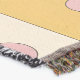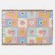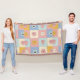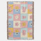 Adorable pastel blanket design featuring a patchwork pattern of happy clouds, hearts, and stars in soft hues of yellow, pink, blue, and cream. Perfect for cosy, cheerful, and whimsical home decor.