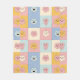 Adorable pastel blanket design featuring a patchwork pattern of happy clouds, hearts, and stars in soft hues of yellow, pink, blue, and cream. Perfect for cosy, cheerful, and whimsical home decor.