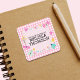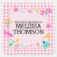 Cute Pastel Pink Chequered Floral Girls Name Square Sticker