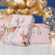 Cute Pastel Pink with Deer and Red Bow Wrapping Paper