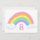 A chalk-style, pastel-rainbow-and-clouds, birthday-party invitation. The rainbow and large pink number also appear on the back of the invitation.