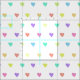 A cute and trendy pattern of hearts in a rainbow of bright pastel colours. Bright pinks, aquas, blues, purples and orange decorate the canvas.