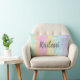 This cute girls' throw pillow features multicolored pastel tie dye stripes, along with a text template for easy personalisation!