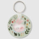Cute Pastel Spring Bunny Floral Wreath Nursery Art Key Ring
