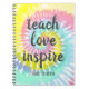 This cute notebook features a pastel tie-dye background with the inspirational quote "teach love inspire" in handwritten script typography. Personalise the notebook with your favourite teacher's name. Makes for a great gift for teacher appreciation, back to school, Christmas, or as an end of the year thank you gift.