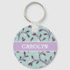 Cute pastel turquoise floral pattern monogram key ring
