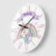 Cute Pastel Unicorn & Sparkly Rainbow Custom Name Large Clock