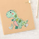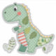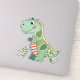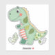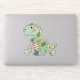 This charming sticker features a patchwork-style little dinosaur with polka dots, leaves, and stitched details.