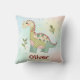 This personalised nursery baby blanket features a cute patchwork-style dinosaur with colourful, stitched fabric patterns in polka dots, florals, stripes, and leaves.