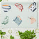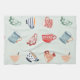 Cute pattern of colourful mugs blue dots stripes tea towel