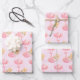 Wrapping paper sheets with an adorable illustration of a little brown baby bunny wearing a tiny golden crown. Carried by balloons in a pink heart blanket.