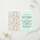 Baby shower invitation postcard with a whimsical pattern featuring a collection of delightful children's toys and animals.