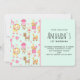 A birthday invitation with a whimsical pattern featuring a collection of delightful children's toys and animals.