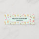 Mini business cards with a whimsical pattern featuring a collection of delightful children's toys and animals.