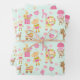 Wrapping paper sheets with a whimsical pattern featuring a collection of delightful children's toys and animals.