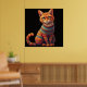 Cute Patterned Cat Illustration Folk Art Style Poster