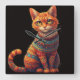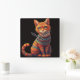 Cute Patterned Cat Illustration Folk Art Style Square Wall Clock