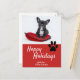 Cute Paw Red Script Dog Photo Happy Holiday Postcard. Cute Christmas holiday postcard with a trendy white script on red. Personalise the postcard with your favourite dog photo and your names or any text.