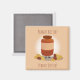 Magnet with an illustrated design of a smiling peanut butter jar that is standing between two piles of peanuts. The words “Peanut Butter? Peanut Better!” show above and below the cartoon character. All of the words can be customised.