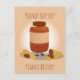 Postcard with an illustrated design of a smiling peanut butter jar that is standing between two piles of peanuts. The words “Peanut Butter? Peanut Better!” show above and below the cartoon character. All of the words can be customised.
