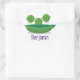 Cute peas jumping in pod cartoon illustration. classic round sticker
