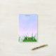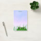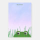 This cartoon frog Post-it® Notes pad features a frog that is partially submerged in a pond but still keeping watch for what may be approaching from the distance - the frog's head and large eyes are at the lower edge of the notepad, peeking through a few blades of grass under a blue sky that has a pinkish hue - name is customisable - part of katz_d_zynes' "Froggy" collection >> https://www.zazzle.com/collections/119251288586496545