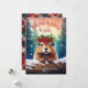 This adorable holiday greeting card features a cute Gopher illustration wearing a festive crown wreath of winter flowers, holly, pine, and berries, with snowflakes gently falling against a Snowy Enchanted Forest scene. The little Gopher is sitting on the snow-capped log to say hello! The playful text "Bright Holiday Wishes" adds a warm seasonal greeting, and can be customised as you like. The reverse side is decorated with a classic plaid check, adding a traditional touch to the overall design. This cute, playful card is perfect for sending holiday cheer to family and friends, and the customisable name and date make it a personalised keepsake.