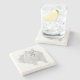 The coasters are gorgeous, a quality feel and heavy weight. They look like a precious archeological find. A rustic stone juxtaposed with a modern floral black and white print. I like the way the print goes slightly imperfect on the cut stone edges giving them a kind-of natural beauty.