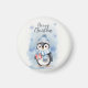 A charming winter illustration of an adorable little penguin wearing a blue striped hat and scarf, bringing a cosy and festive vibe. The soft snowflakes and gentle blue tones in the background create a magical winter atmosphere. Perfect for Christmas cards, posters, stickers, and seasonal crafts!