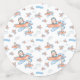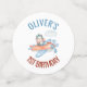 Lovely birthday party table confetti with a watercolor design of a cute baby penguin piloting an cartoon aeroplane / aeroplane with a pale blue sky background with fluffy clouds. Ideals for a baby's first birthday for toddlers birthdays and baby showers. Personalise with your child's name and birthday age. Matching party items available from suziigifts.