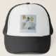 Cute penguin and polar bear with cymbals in snow trucker hat
