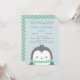 A birthday party invitation suited for the winter holidays! It features a cute little penguin wrapped with a green stripes scarf. Falling snow in the background.