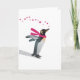 Christmas or Valentine's card of adorable scarf wearing penguin blowing heart kisses in the wind.