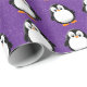 Cute Penguin Cartoon Custom Winter Purple Wrapping Paper