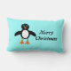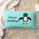 This awesome pillow features a cute penguin character with a white tummy, big blue eyes with black pupils and cute orange feet and beak. This charming little winter bird is sure to delight children and adults. The penguin sits on an icy pale blue background to remind him of his chilly Artic home. There is customisable text that reads “Merry Christmas” allowing you to personalise this design.