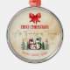 Cute Penguin First Christmas As Family Of Three Metal Ornament