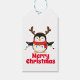 Black White Penguin Lights Antlers Merry Christmas Gift Tag