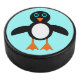 This awesome hockey puck features a cute penguin character with a white tummy, big blue eyes with black pupils and cute orange feet and beak. This charming little winter bird is sure to delight children and adults. The penguin sits on an icy pale blue background to remind him of his chilly Arctic home.