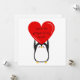 Cute penguin holding a big red heart - square card